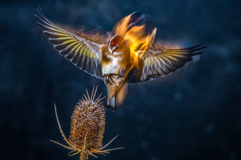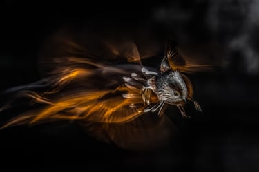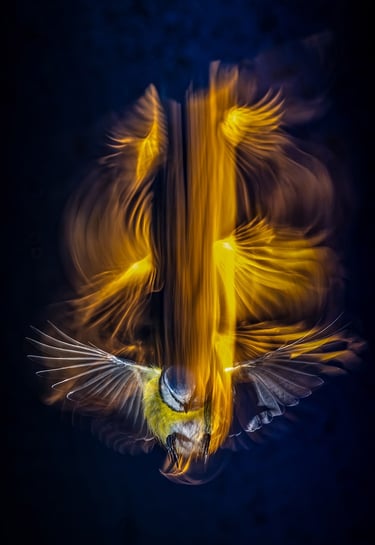 Les photos sont bien réelles, cependant la prise de vue est moins conventionnelle. Pour faire simple, les photos sont faites d'une pose longue, avec un petit coup de flash en fin de pose. Le but est de figer l'oiseau en vol avec la trainée de celui-ci! Enfin c'est sur le papier, sur le terrain cela ne marche pas à tous les coups ! C'est plusieurs centaines d'essais pour sortir un cliché présentable!